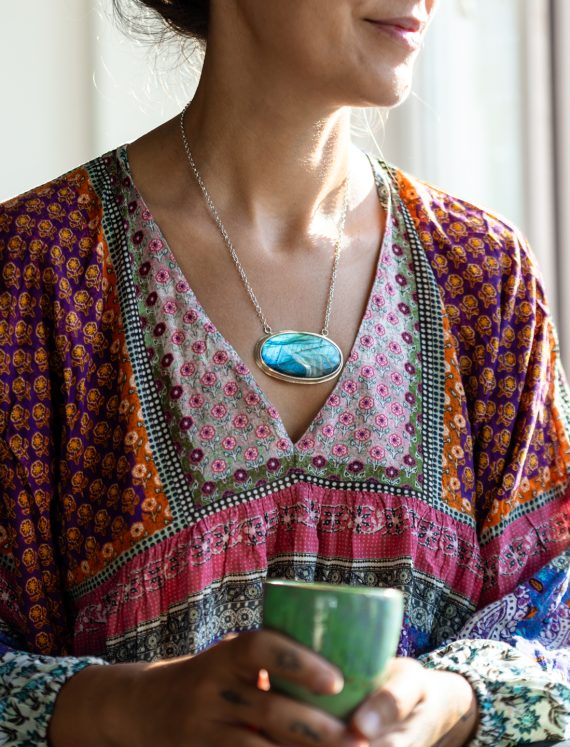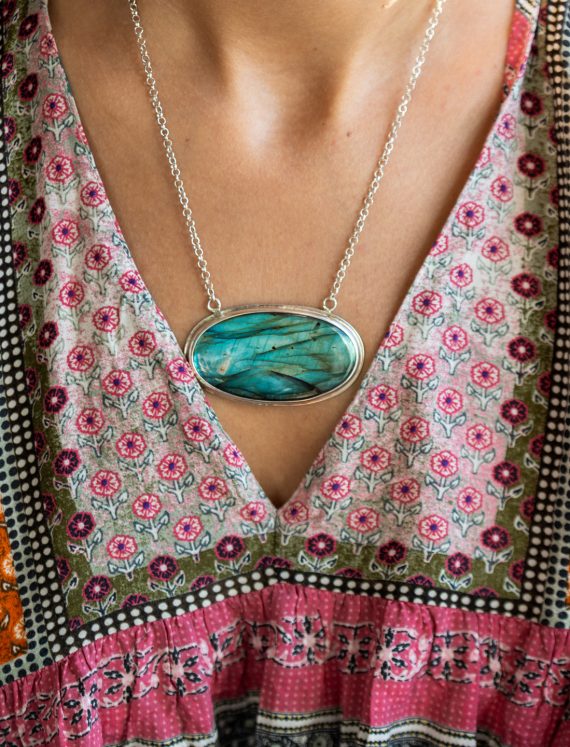 Labradorit Taşlı, Göz, Gümüş Kolye