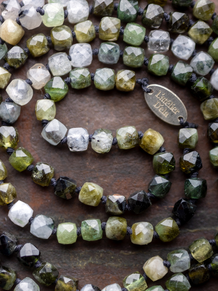 Her taşın tonu ve dokusu farklıdır; doğanın kendi ritmi gibi. Bu yüzden bu kolye de tek ve biricik bir karakter taşıyor.